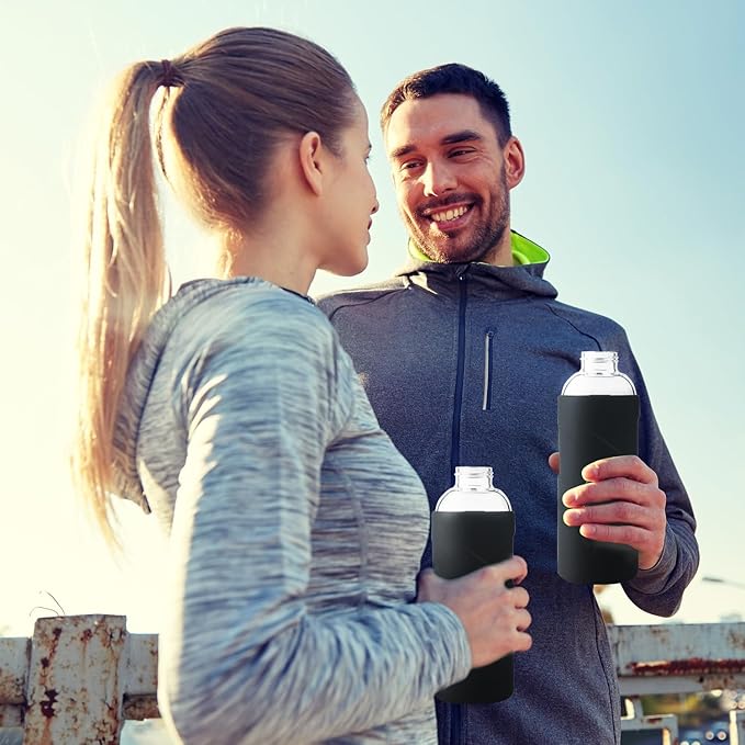 - π STYLISH & PORTABLE: Take it everywhere! Our sleek design makes the glass water bottle has an ideal travel body and elegant appearance. Soft neoprene sleeve with handle offers secure grip and helps protect against breakage.