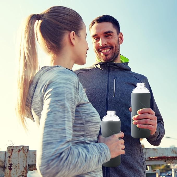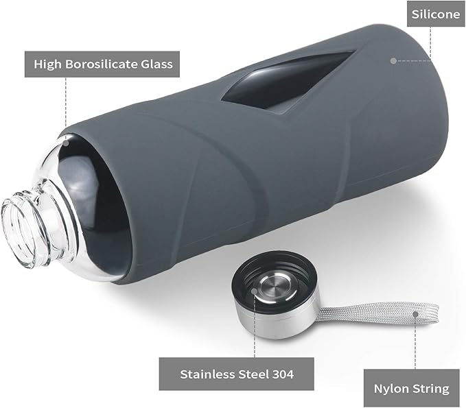 - π STYLISH & PORTABLE: Take it everywhere! Our sleek design makes the glass water bottle has an ideal travel body and elegant appearance. Soft neoprene sleeve with handle offers secure grip and helps protect against breakage.
