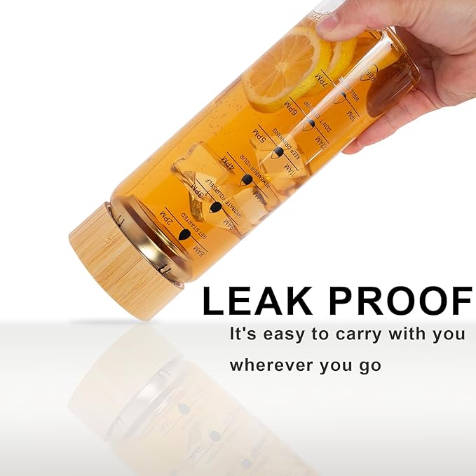- Stay Hydrated: Our 25oz borosilicate glass water bottle reminds you to stay hydrated throughout the day. Crafted from high-quality materials, it delivers a pure taste, keeping you refreshed and energized!