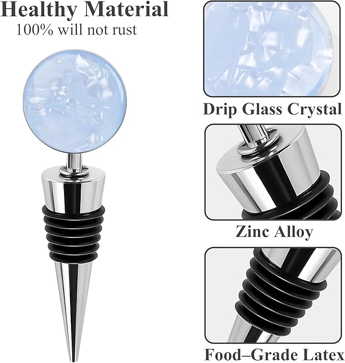 - Wine bottle stoppers feature a round shaped of topper with some designs, a plated shaft and flexible rubber gaskets,different patterns that is a great way to help you or your guest spot which bottle is which on the party or gathering.