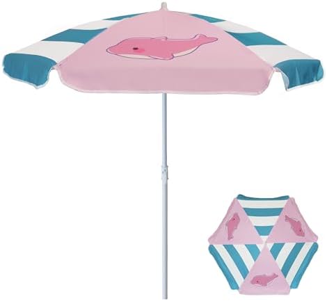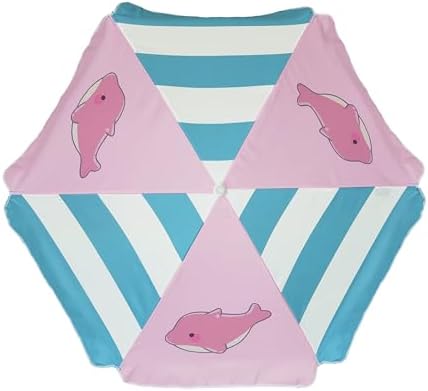 AMMSUN 5ft Seaside Umbrella for Sand Box Water Table - Kids Durable Umbrellas for children Picnic Beach Camping Garden Outdoor Play Shade Pink Dolphin