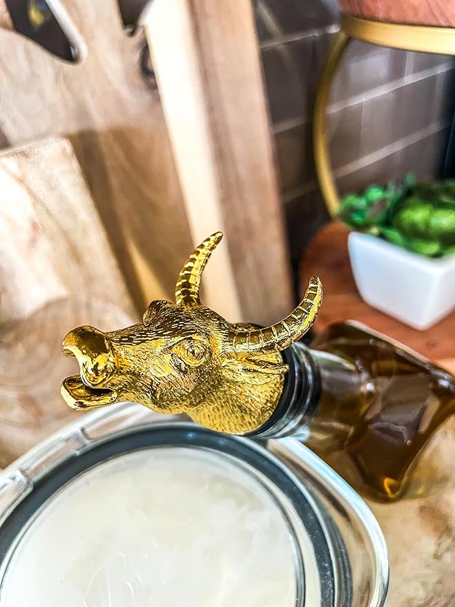- GOLD BULL COOKING OIL & WINE POURER - This gold color stainless steel wine, champagne, and alcohol bottle stopper is a sleek and functional accessory designed to enhance your wine pouring experience. Crafted from durable stainless steel, this pourer is built to last and resistant to corrosion, ensuring it maintains its quality over time.