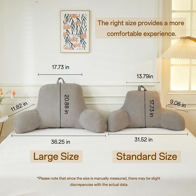 Back Pillow for Bed Sitting Up,Reading Pillow for Sitting in Bed Adult with Arm Pillow,Back Rest Pillow for Sitting in Bed with Pockets,While Gaming,Working,Watching,Large-Gray