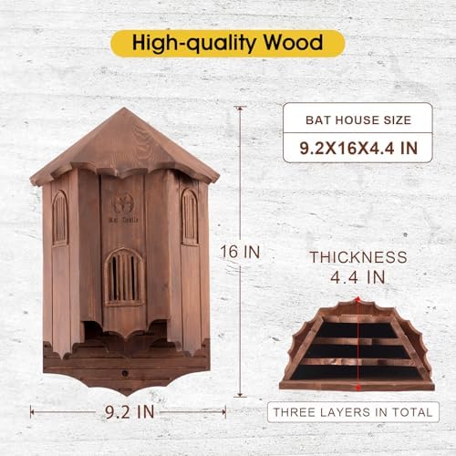 - Great Bat Shelter - Makes Bats Feel At Home: The large 16'x9.2'x4.4' bat house features an efficient three-room design capable of housing up to 100 bats, providing an ideal habitat for bats; flying mammals can find good living conditions thanks to the dark brown cedar bat house used outdoors.