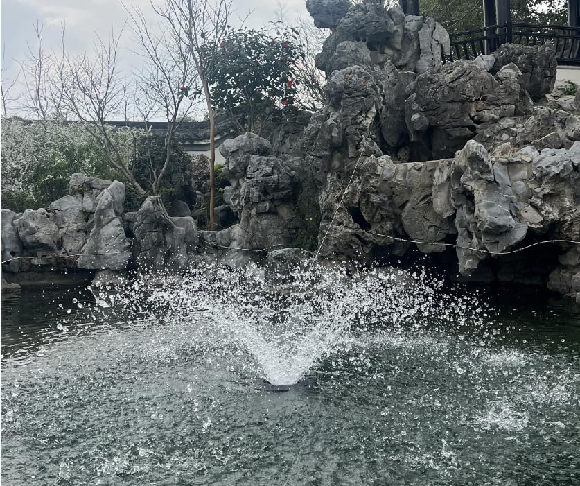 - xygen-increasing spray seat, with wide spray diameter and 360-degree spray, hasgood oxygen-increasing effect and reduces the probability of fish diseases The filter screen type inlet cover isolates weeds and sundries to make water inflowsmoother,This product is suitable for fish ponds, river aeration, landscape fountains, etc. elt adopts floating installation and floats on the water surface automatically with thewater level.