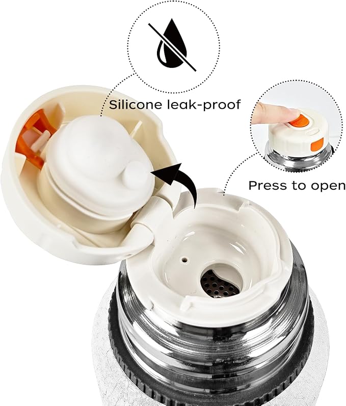 - Leak-Proof Design: The bottle has a leak-proof cap and silicone gasket to prevent spills, making it ideal for travel, gym, or outdoor activities.