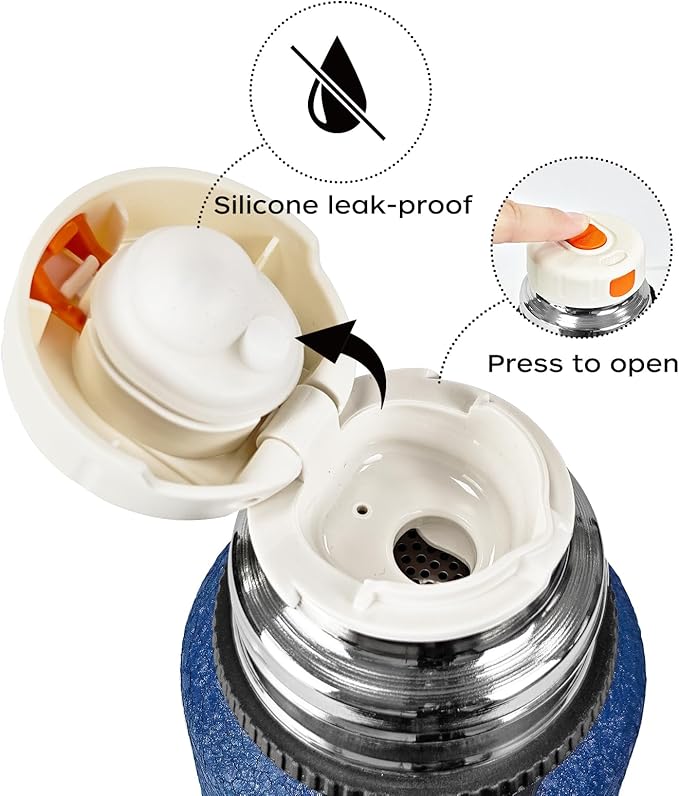 - Leak-Proof Design: The bottle has a leak-proof cap and silicone gasket to prevent spills, making it ideal for travel, gym, or outdoor activities.