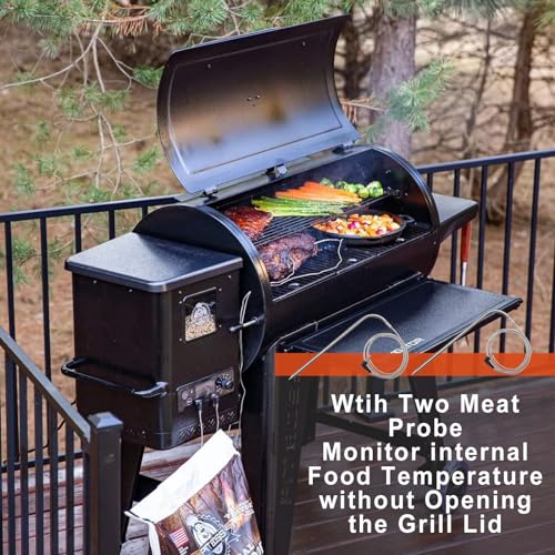 - 【DUAL MEAT PROBE/ RTD PROBE 】The precision technology of the two included meat probes and LED temperature control board track the internal temperature of your food.RTD probe controlling the temperature of your grill .So you never have to worry about overcooking on the grill again.There is a chance that over time, the grill probe will fail and it will need to be replaced