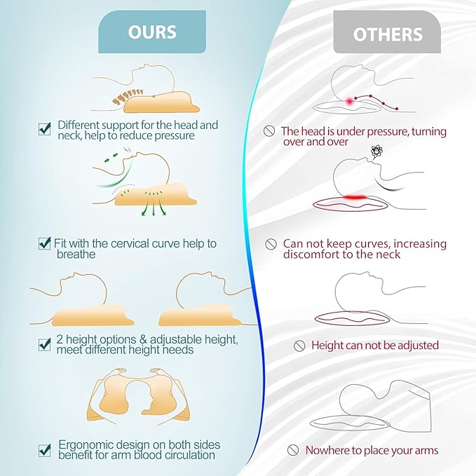 - CONTOURED PILLOW FOR NECK SUPPORT: It is supportive enough to adjust the direction of the pillow according to each person's different sleeping habits. Ensures alignment of the head, neck, and spine, relieves neck and shoulder pain and fights sleep disorders.