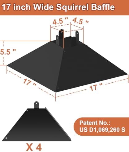 - Wide 17-Inch Diameter: The squirrel proof baffle is designed to be generously sized to effectively keep your bird feeder out of reach of squirrels and raccoons. This baffle effectively deters squirrels from approaching bird feeders or other items hanging from the pole, ensuring that your birds can enjoy feeding in peace.