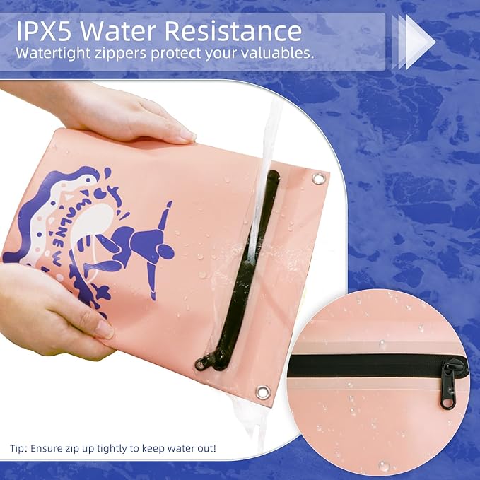 - WATERPROOF PROTECTION: Our waterproof bag features watertight zippers that effectively prevent water ingress. Crafted from premium waterproof fabrics, it offers IPX-5 rated protection, keeping your gear dry and safe (not suitable for underwater sports, ensure tight zipper closure before use).