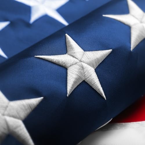 - American Flag 4'x6' Embroidered Stars Outdoor:4x6 American Flag outdoor heavy duty consists of 50 densely embroidered stars and 13 thickened double-stitched stripes. All the edges of the USA flag are double-sewn, and the placket hem has 4 rows of reinforcement and is well made to prevent rapid tearing and wear and fraying, increasing the longevity of the US flag