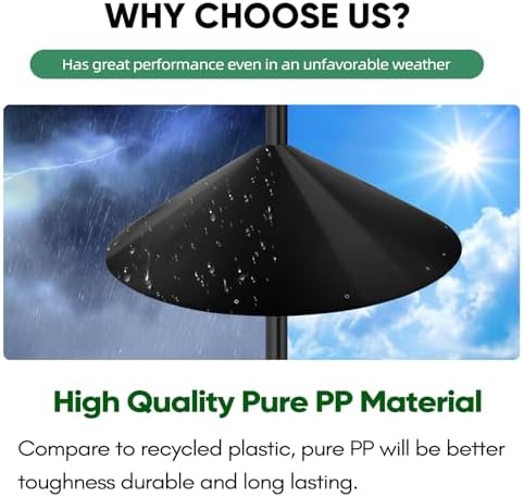 - 【24'' Bigger and Wider Design】--With a wide 24-inch diameter and slippery surface, this baffle is larger than other sizes, squirrels will have no grip to climb onto the feeder, ensuring that your feathered friends get all the food they need. Larger sizes have greater jitter, no matter if rodents fly up or climb up, they will not be able to stand stably on the baffle.