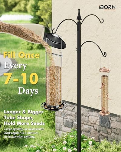 - 【2.8lb Large Capacity&Port Control Seeds Flow,Fill Once a Week】iBorn Large Capacity Bird Feeder Holds up to 2.8lb of seed,reduce the number of regular fills.With right size of each port control seeds flow into the tray.Reduce excess seeds waste and make it easier to fill once a week.