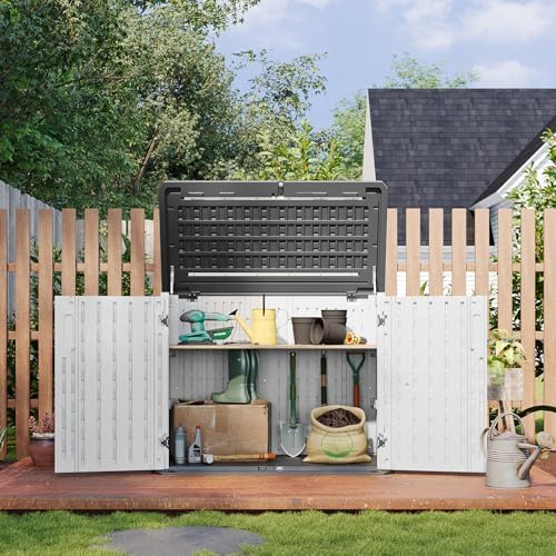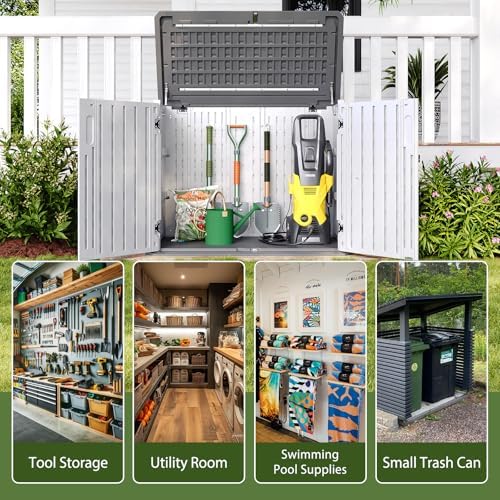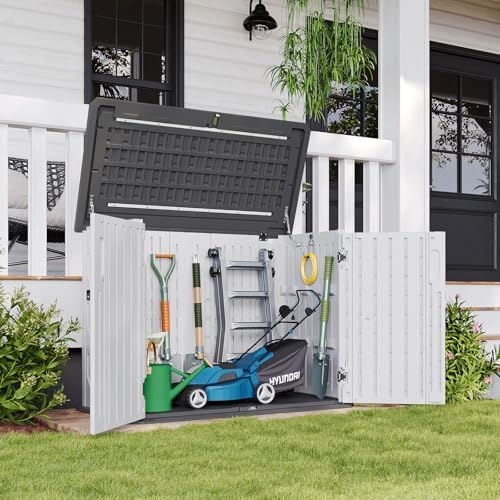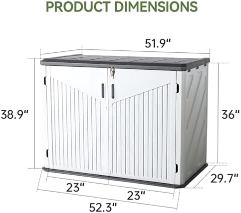 Aoxun Outdoor Storage Cabinet 35 Cu.Ft Outdoor Trash Can Storage Shed Waterproof Horizontal Storage Shed Outdoor Storage for Garbage Bin, Generator, and Lawn Mower (White)