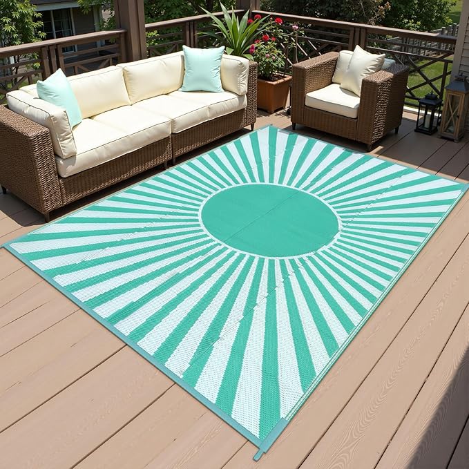 - Versatile & Functional: These rugs are designed to complement any patio, balcony, porch, or garden decor while providing a comfortable outdoor space. Suitable for RV camping, picnics, beach outings, and poolside areas.