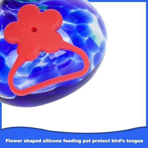 - Hand-Blown Glass:Each bird feeder ball is expertly crafted by skilled artisans, featuring eye-catching red silicone flowers that not only attract hummingbirds quickly but also protect their tongues from injury.