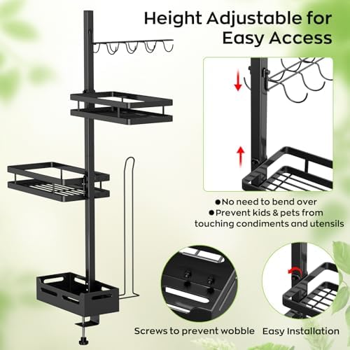 - 【Easy to Assemble】This blackstone caddy organizer does not require drilling and complete with all necessary tools and manuals, can be installed in a few minutes. The height of the picnic utensil condiment caddy is also adjustable for added convenience.