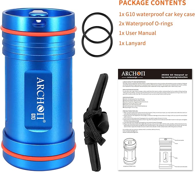 - 😜 Double-layer O-ring Design: Featuring a double-layer O-ring design, this waterproof key holder ensures effective waterproofing up to a depth of 150 meters. Tailored for professional divers, it serves as a secure storage solution for car keys and other small accessories requiring waterproof protection. The excellent waterproof performance also makes it suitable for water activities like canyoning and kayaking.