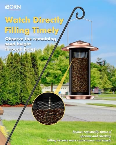 - 【Design For Outdoors Durable Use】iBorn Brings new Whole Metal Bird Feeders For Outdoors in 2025, aim to provide bird lovers with high-quality and durable using experience. Whole metal construction will make it stronger and heavy duty, not easy to get damage by weather or animals. No worry about being breaking or aging and becoming fragile easily, keep it for a longer time.