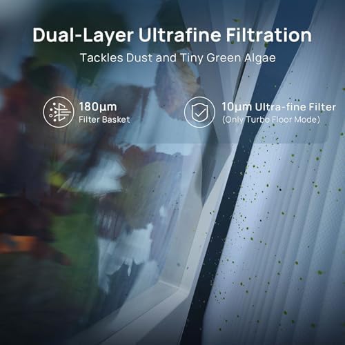 - Ultra-fine Dual-layer Filtration: To thoroughly remove fine particles such as algae, dust, and sand, you can install a 10-micron ultra-fine HEPA filter as a secondary filter in “Turbo Floor” mode