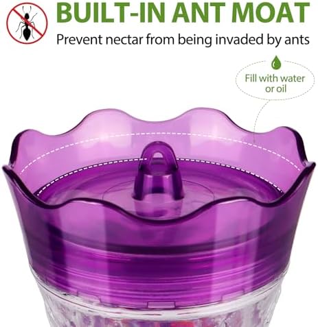 - Built-in Ant Moat - The hummingbird feeders for outdoors with ant moat on top, filled with water or oil effectively prevents nectar from being invaded by ants