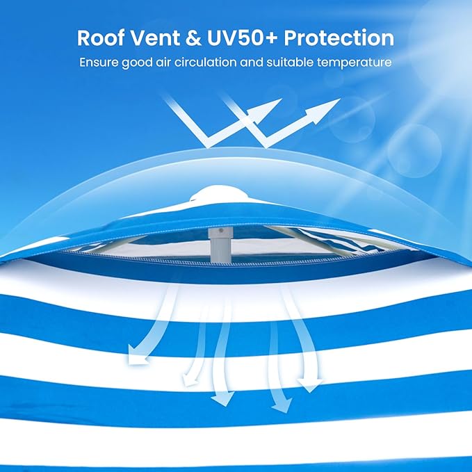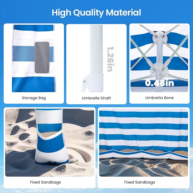 - 【Enhanced Stability & Ventilation】Beach cabana umbrella has air vents on top,Inot only keeps the air flowing but also helps the balance of the beach umbrella.Privacy Sidewall is removable, you can choose whether to install it according to your needs.