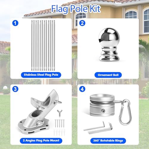 - 7 FT Upgraded Thicken Flag Pole Kit: Our Flag pole is made of high quality stainless steel, and features a durable 0.5mm upgraded thicken construction, designed for superior stability and enduring performance against the elements.