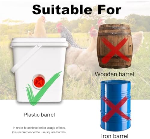 - WIDELY USED:Place the container with chicken feeders 6-10 inches above the ground, or adjust it according to the height of the poultry for feeding。Chicken Feeder Kit is suitable for all types of poultry, including chickens, parrots, quail, ducks and more