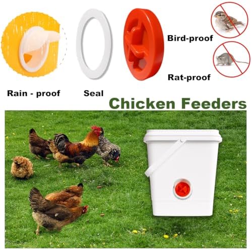 - WATERPROOF &RAT-PROOF:The chicken feeder kit is also rainproof. Designed with extended rain hood that can be used as a rain cover, and keep the chicken food dry and clean. Each port comes with a cover to stop rodents from entering or stealing food