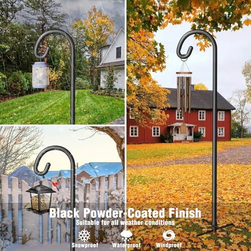 - Adjustable Height & Sleek Design: Easily customize the height to suit your needs, whether for bird feeders, lanterns, or hanging baskets. The black finish blends seamlessly into gardens, patios, or wedding venues, adding an elegant touch without being obtrusive