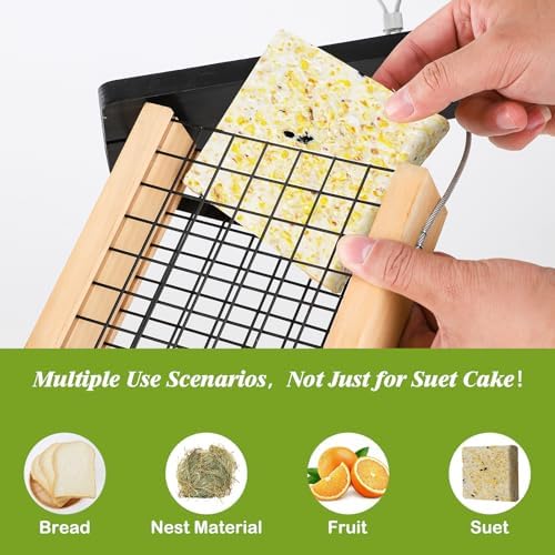 - 【WIDE APPLICATION】This wild bird feeder can work not only as a suet cage, but is also suitable for seed cakes, mealworm cakes, fruit, bread or nesting materials. It has excellent anti-rust features, which is suitable all year round. This makes it an ideal gift for bird lovers.