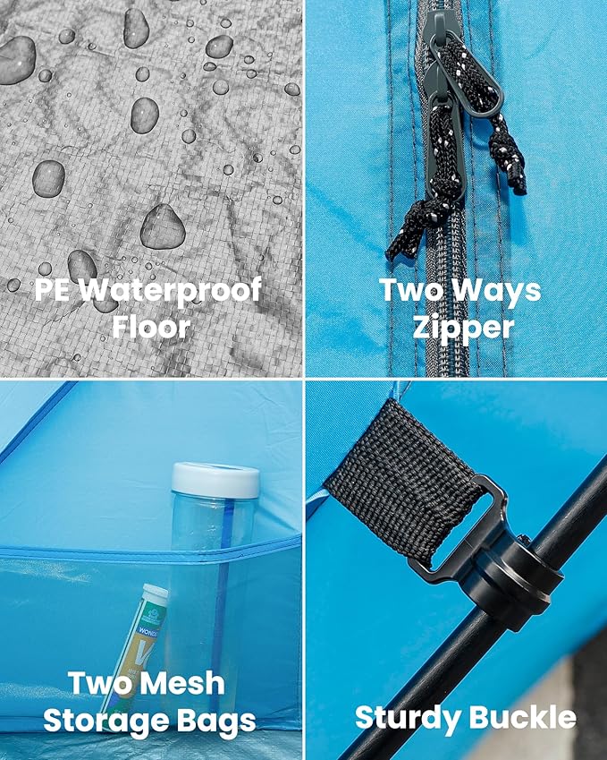 - Innovative and Versatile Design: The beach tent has a zippered door for private changing. The front floor's extension offers more space for various activities. Further more, our sun shade featuring numerous mesh panels, not only offers good visibility but also promotes cross - ventilation