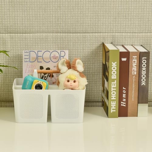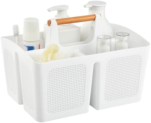 ALINK Portable Shower Caddy Basket with Compartments, Plastic Divided Cleaning Caddy Organizer Storage Tote with Handle for Bathroom, College, Dorm Room Essentials, White