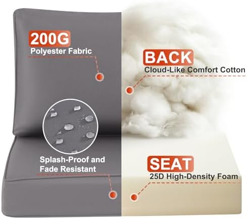 - 【Ergonomic Design for All-Day Relaxation】The extra-thick 4-inch foam seat cushions provide superior comfort compared to flat 3-inch competitors, while high-loft pillow inserts maintain shape after repeated use. Breathable fabric prevents overheating, making these patio sofa cushions perfect for summer BBQs, sunset cocktails, or lazy afternoon naps.