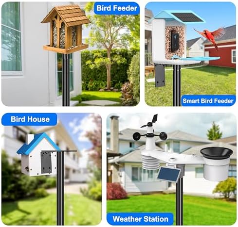 - Strength and Stability: This birdhouse pole kit has a total height of 76 inches, coming with a wooden board, 4 middle extension poles measuring 16.5 inches each and a sturdy 5-prong base, ensuring excellent support and stability.Tip: if your smart birdhouse never matches the mounting holes of the plate, try bridging the two with a wooden board.