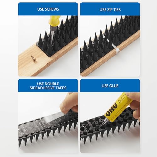 - 【Flexible Installation】Use nails/screws, double sided tape and strong zip ties to fix the animals spikes on any flat surface, such as fence,roof,corridor,shed,balcony,eaves and other scenes.