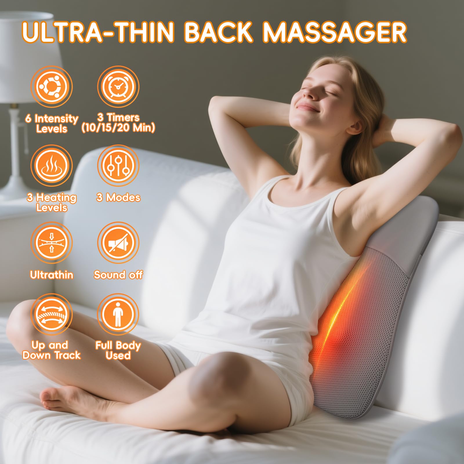 - 【Slim & Portable & Reset Design】Ultra-portable neck and back massager with dual USB chargers and car adapter (car/home dual charger), slim 0.75' profile fits seamlessly in cars, office chairs, or recliners. This back massager also has a reset function, just wait for 2 seconds and it will return to the preset comfortable state, perfect for home, office, or travel travel-no bulky equipment needed.