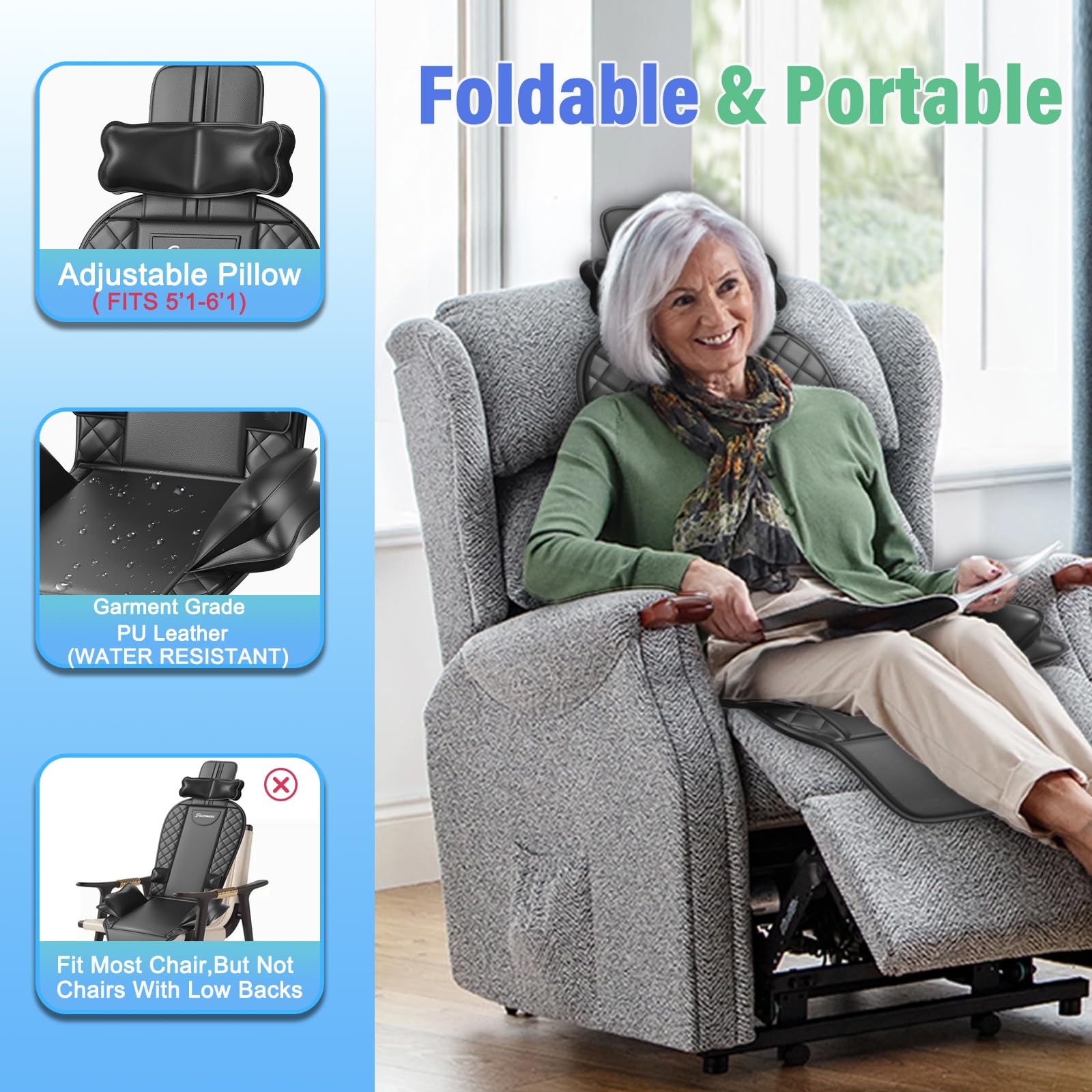 Back Massager with Heat & Traction & Vibration, Seat Massager Pad for Pain Relief Deep Tissue, Lumbar Traction, PU Leather, Foldable, for 5’ to 6’1”, Massage Chair Pad for Office Home