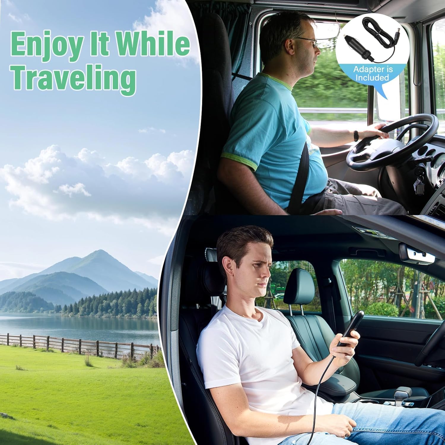 - Full Back Massage Pad: This chair massage pad features multiple massage nodes and dual vibrating motors, delivering lumbar traction and vibration massage. It provides targeted relief for the neck and thighs with gentle massage and offers lumbar traction support for added comfort. The built-in heating pad and massage functions for the upper and lower back help alleviate spinal pressure from extended sitting during long trips or office hours.