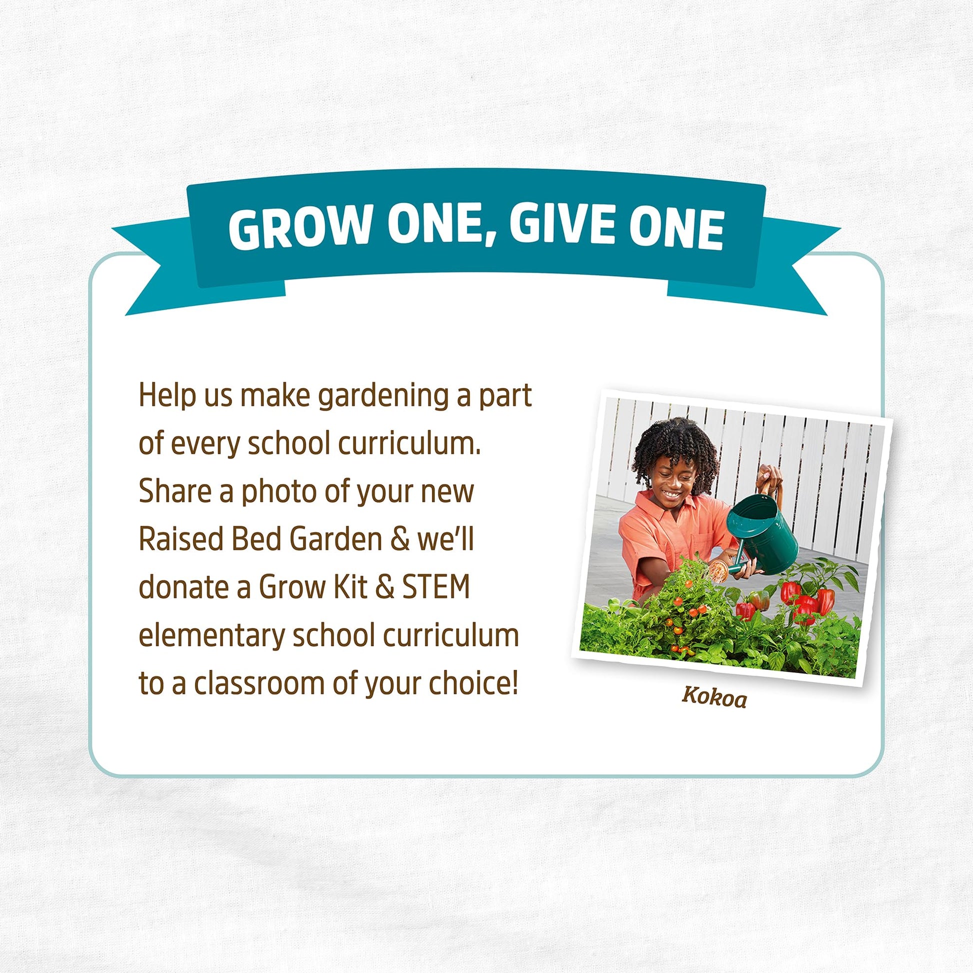 Plus, with our #GrowOneGiveOne campaign, for every photo you share on Instagram or Facebook with your own raised gardeb (tag @BacktotheRoots & #GrowOneGiveOne) we'll donate a gardening kit and STEM curriculum to an elementary school classroom of your choice!