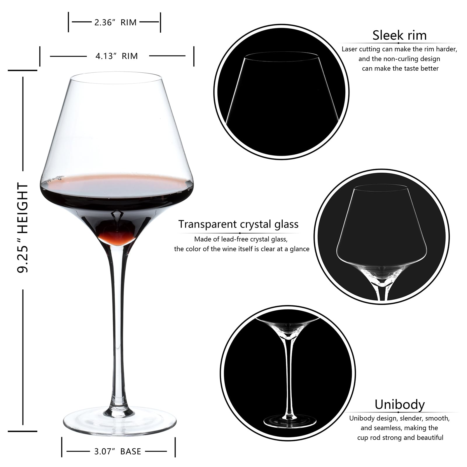 - Handcrafted --- Each wine glass is hand-blown by an experienced master craftsman, by whom the edge is delicately polished and cut for a thin and smooth appearance to provide a better sense of touch for your lips and enhance the quality and flavor of the wine.