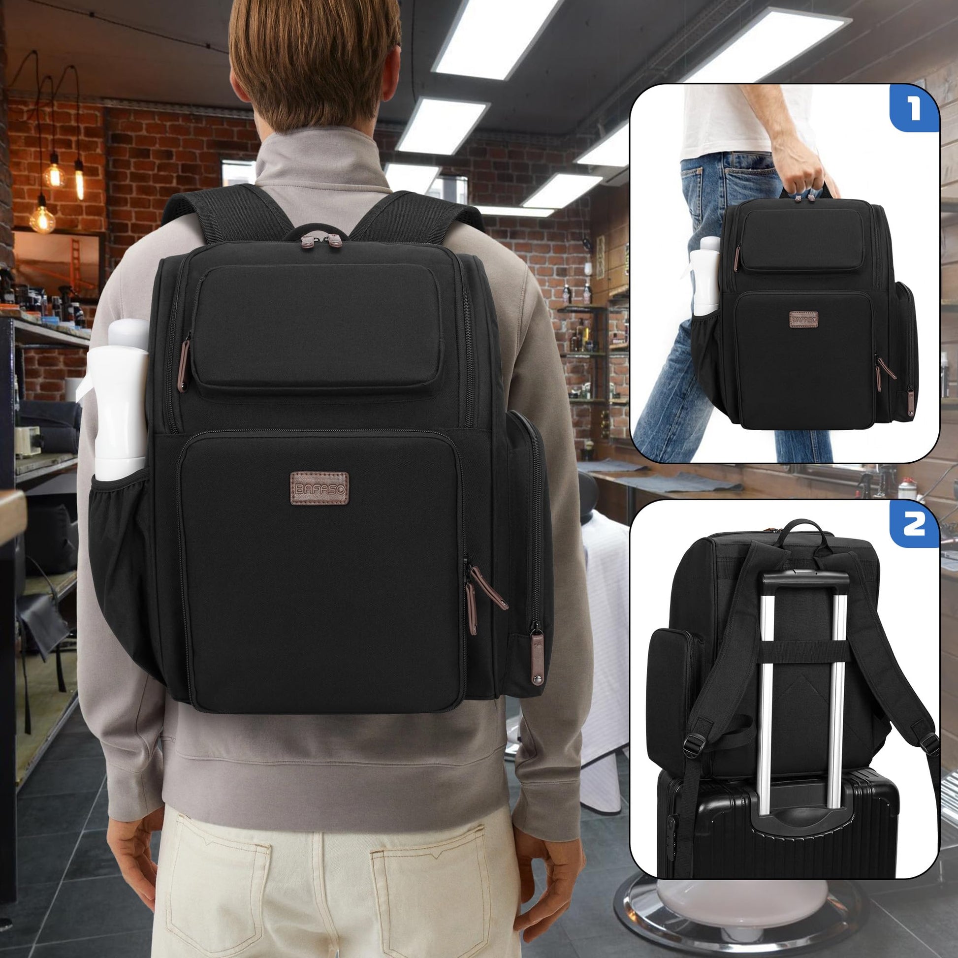 BAFASO Large Capacity Insulated Barber Case with a Semi Detachable Divider and 2 Removable Pouches, Hairstylist Traveling Bag with Multiple Pockets Holds Barber Styling Tools, Black