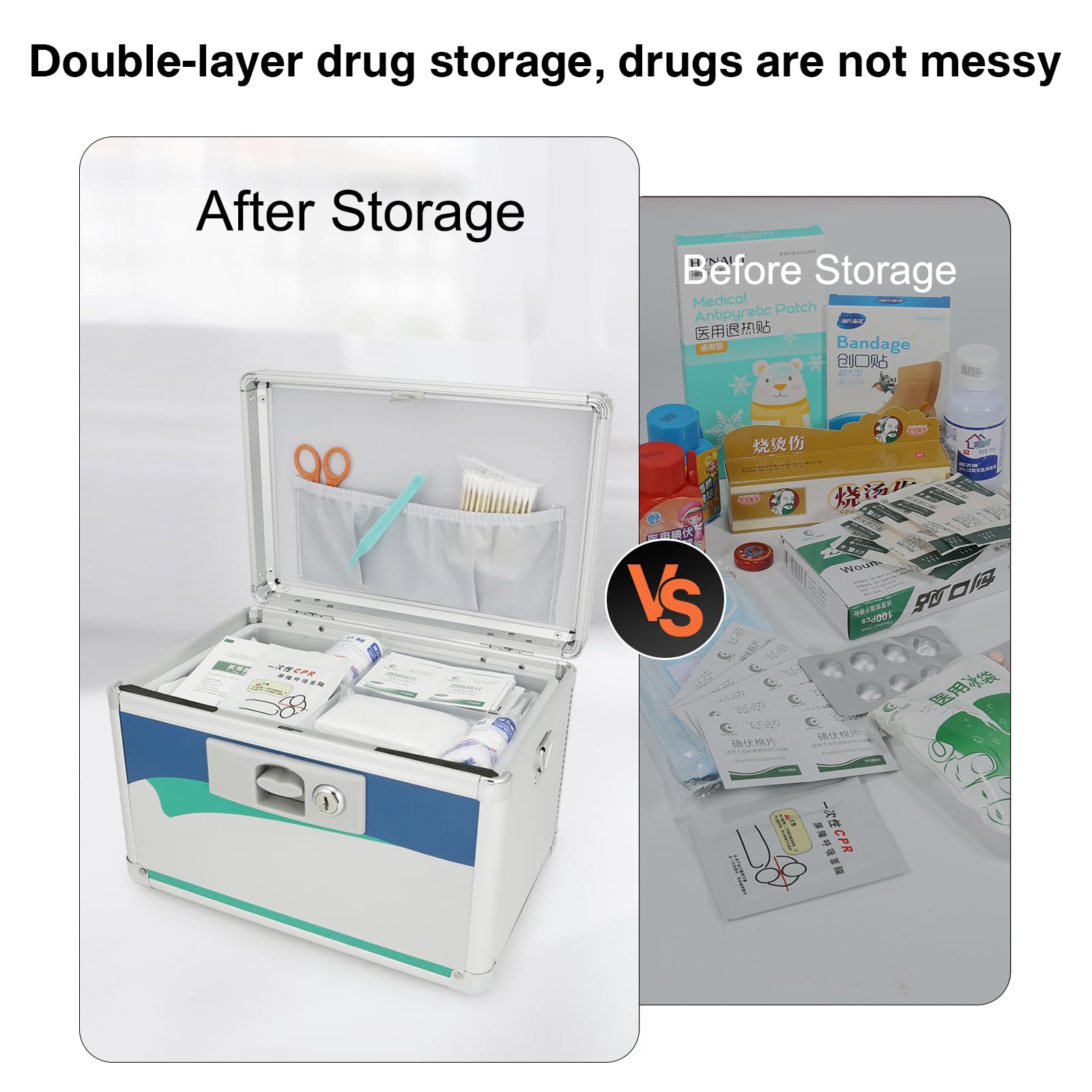 - Multiple compartments and adjustable dividers allow you to organize medications, first aid supplies, or small accessories efficiently. The included plastic tray provides extra space for pills, ointments, or other essentials