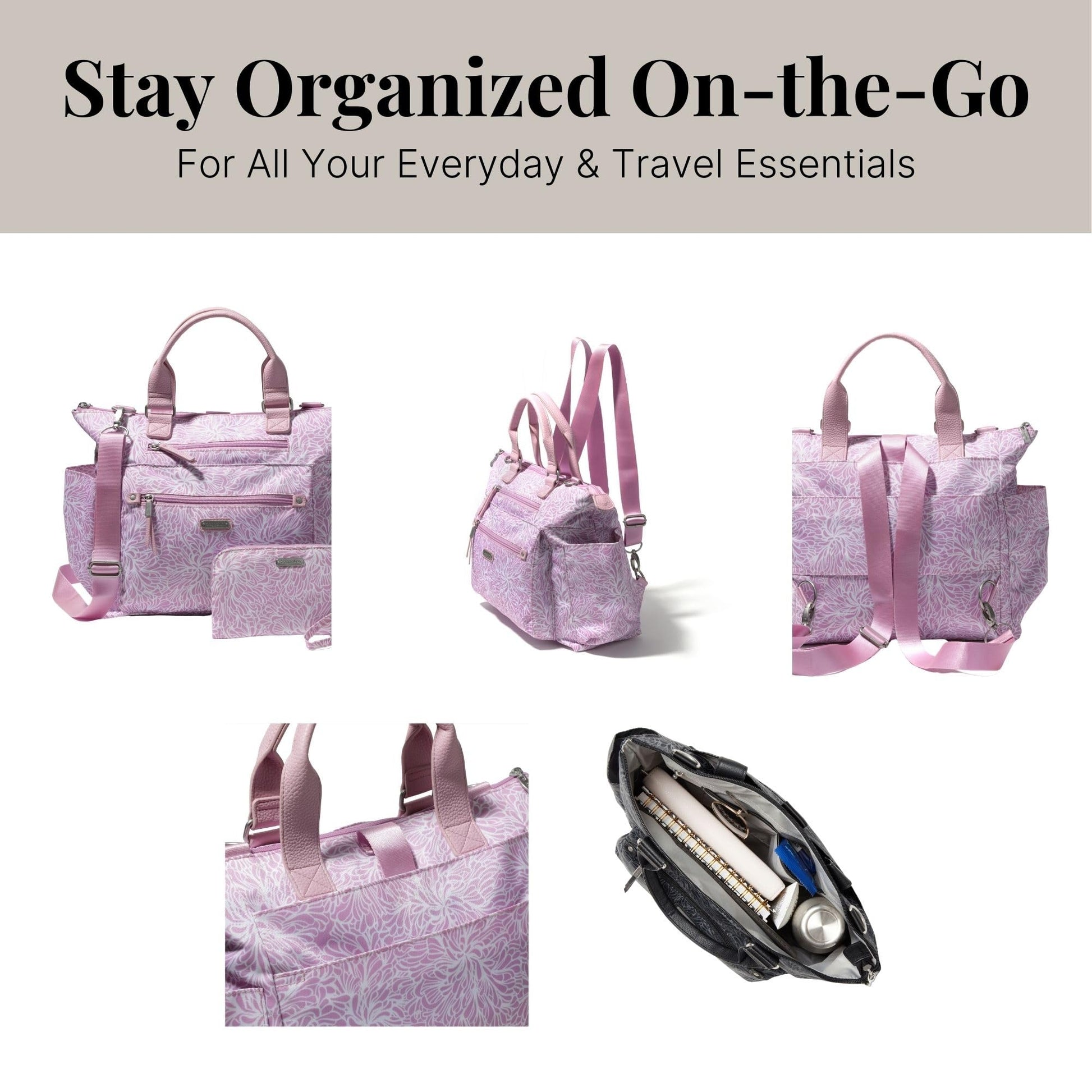 Baggallini 3-in-1 Convertible Backpack - Medium 12x15 inch Travel Backpack Crossbody Tote with RFID Phone Wristlet