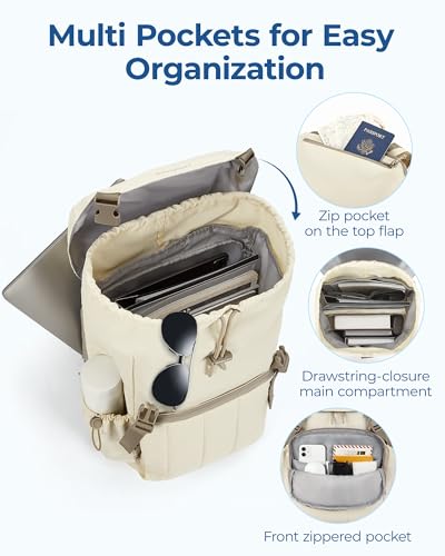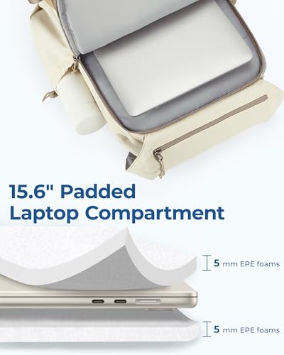 BAGSMART Backpack for Women, Wide Opening Travel Backpack, College Backpack for 15.6 Inch, Water-Resistant Quilted Daypack Lightweight Bookbag, Beige