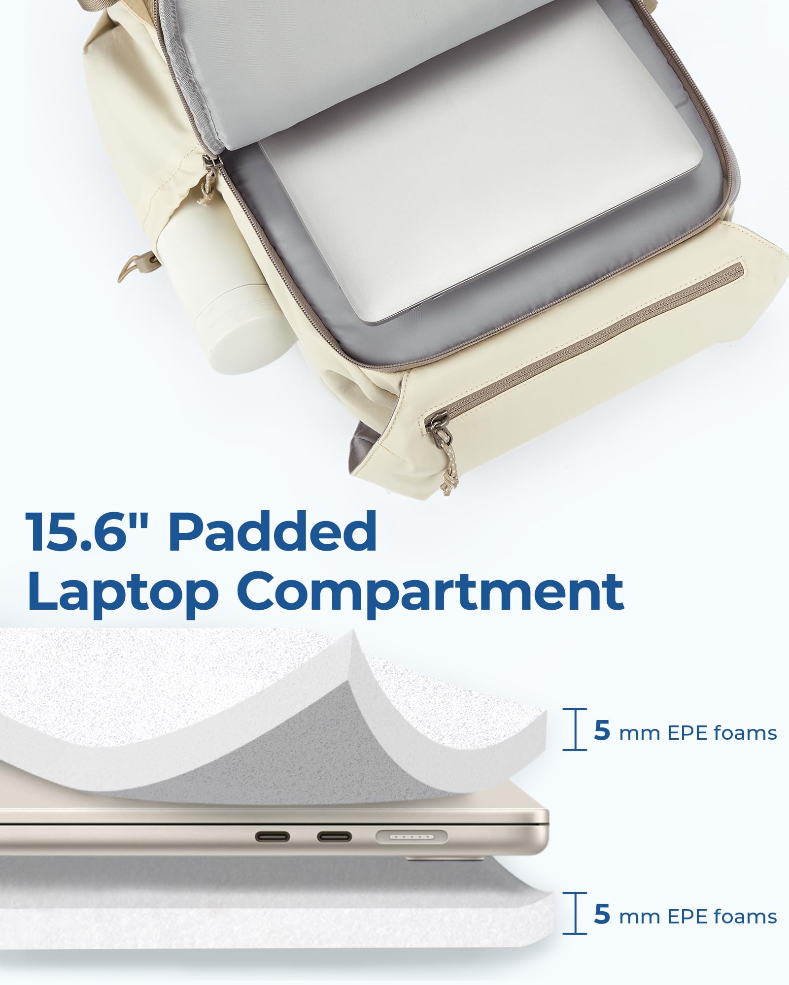 BAGSMART Backpack for Women, Wide Opening Travel Backpack, College Backpack for 15.6 Inch, Water-Resistant Quilted Daypack Lightweight Bookbag, Camel