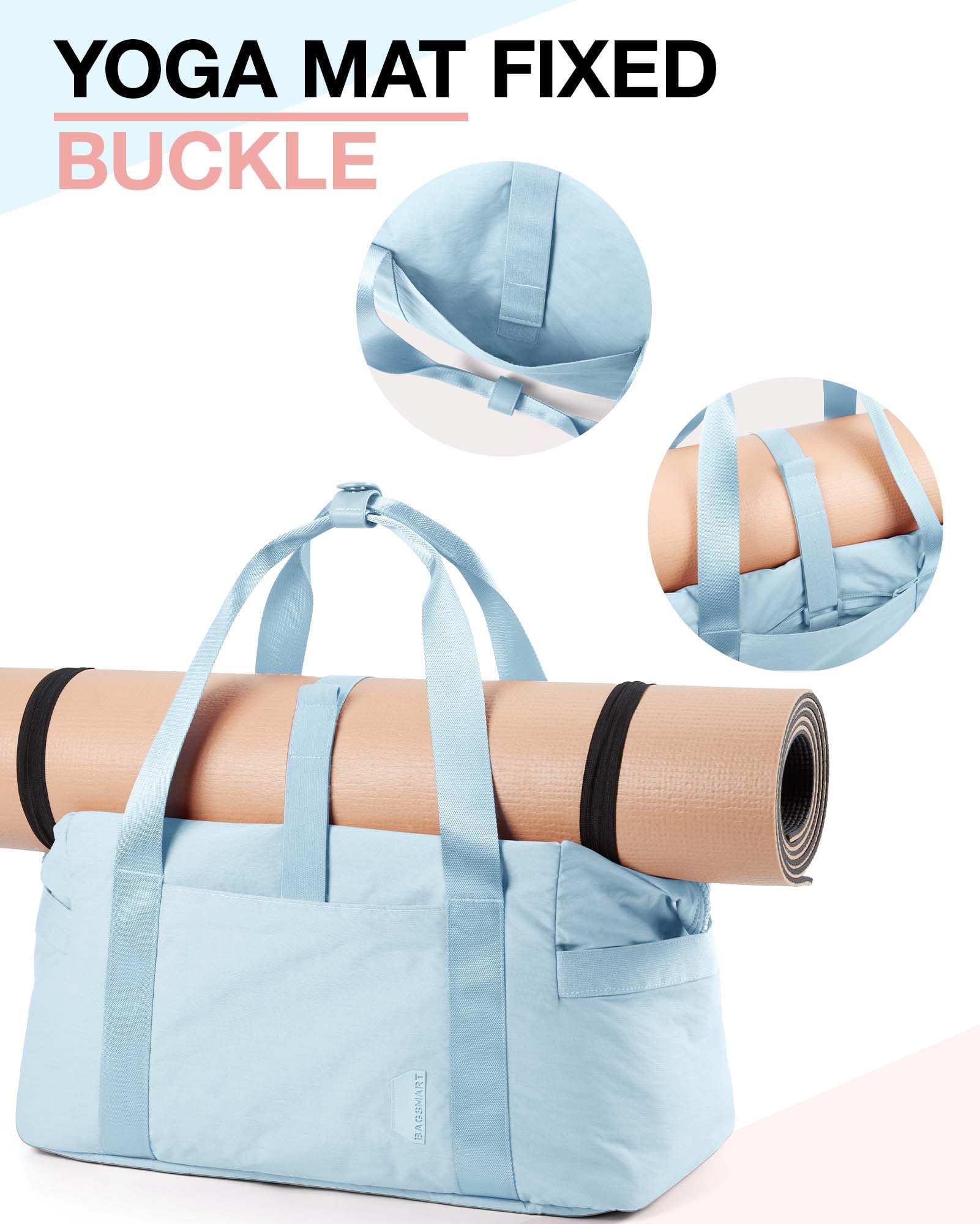 - Yoga Lovers: Friendly- Duffle bag’s yoga mat buckle makes you easy to carry you yoga mat. The most convenient way to carry your yoga mat.