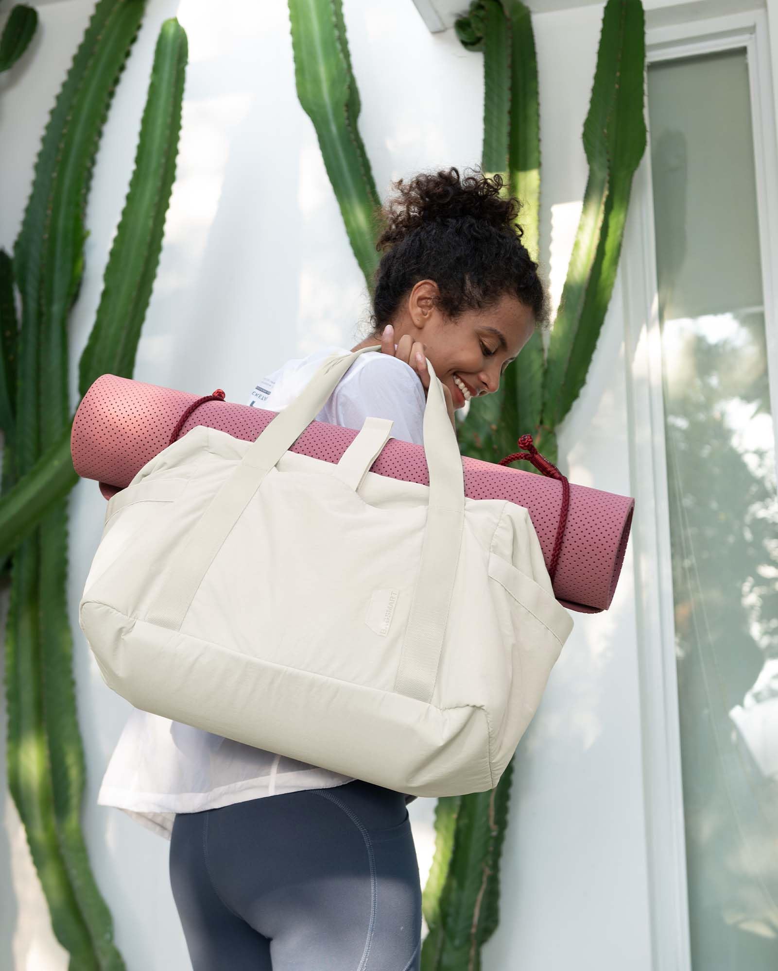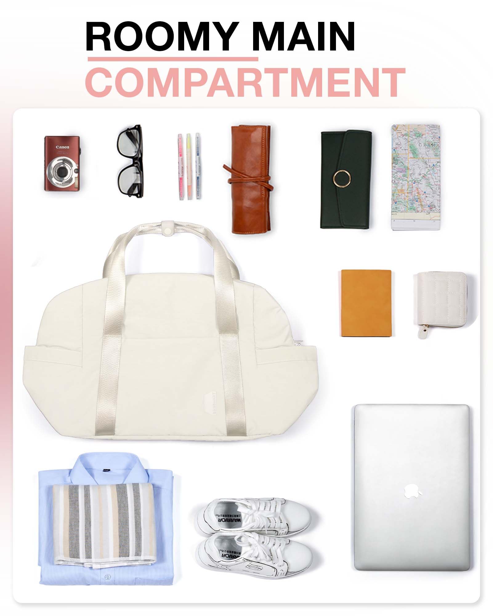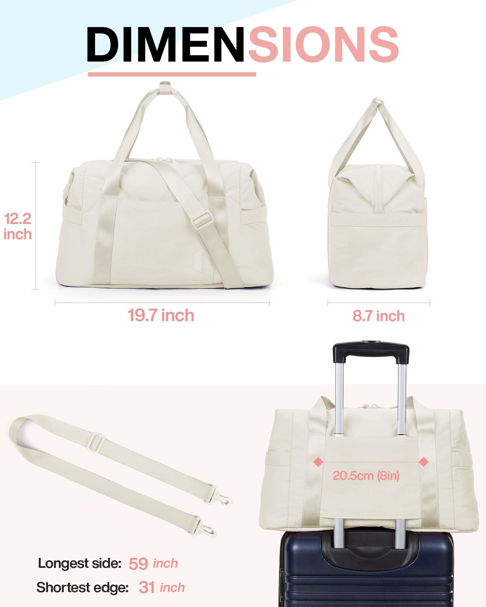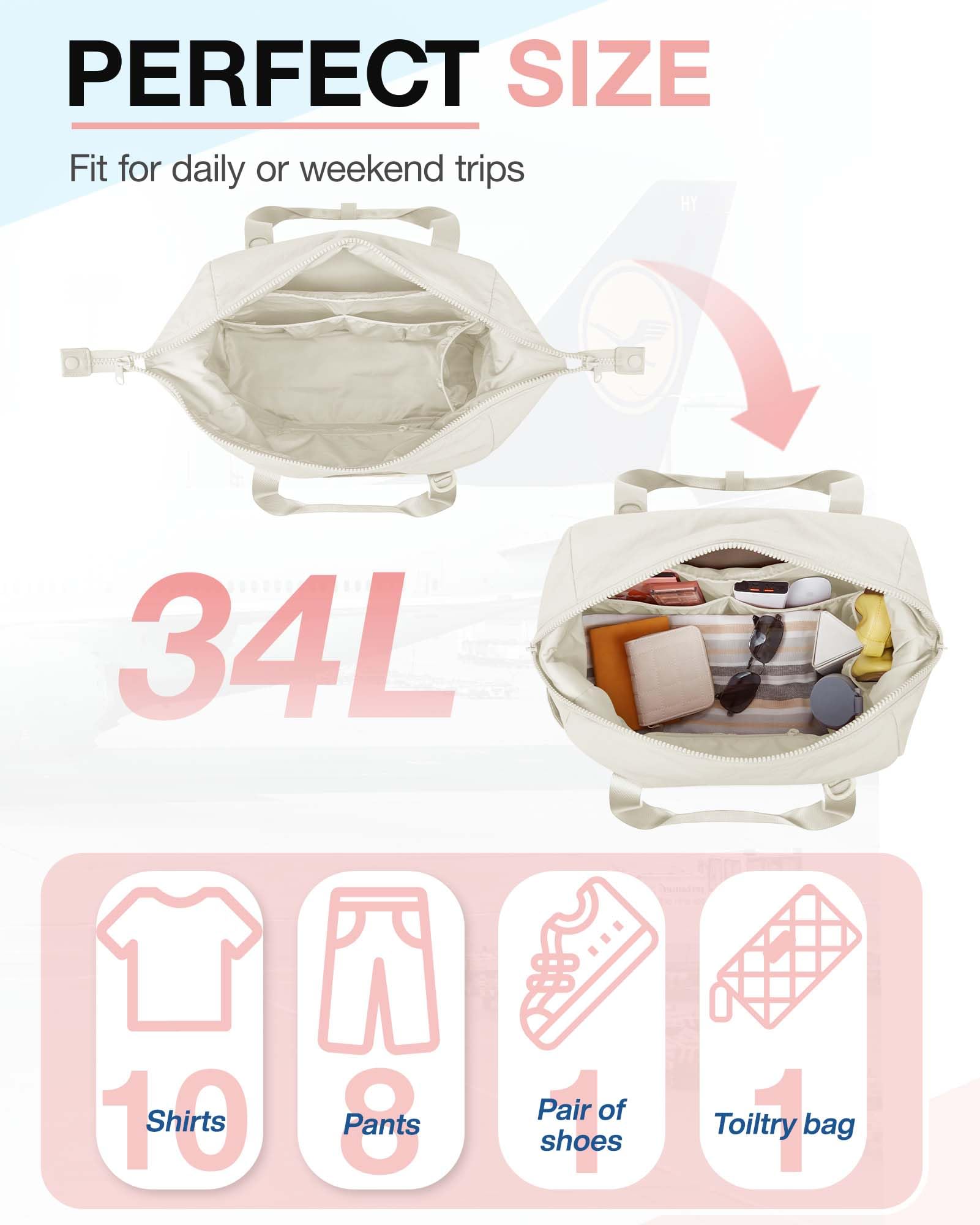 BAGSMART BAGSMART Gym Bag for Women, Carry on Weekender Overnight Bag, Travel Duffel Bags with Trolley Sleeve, Personal Item Travel Bag Tote Bag Workout Dance Bag, Beige-34L