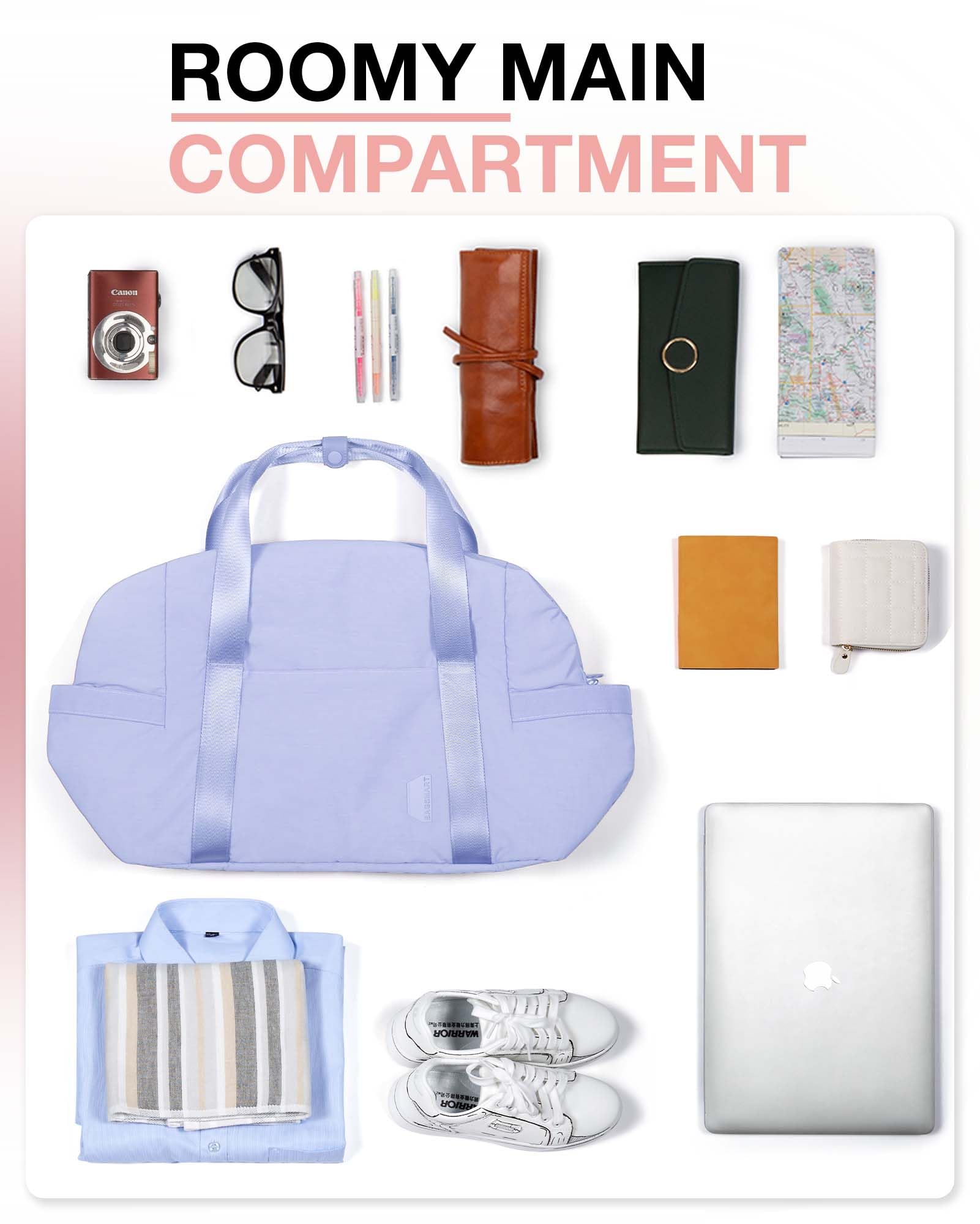 - Ultra Lightweight: Weekender bag weights only 1.8 pounds. Lightweight and soft nylon fabric makes your carrying comfortable.
